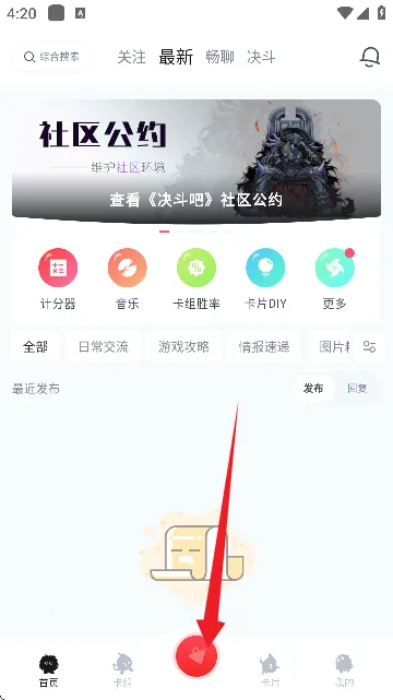 1、实用工具集成:决斗吧2026最新版本集成了决斗计分器、音乐播放器、附近卡店导航、卡片DIY创作等实用工具,支持自定义卡图与音效,让玩家更轻松地管理游戏过程,从计分到音乐,一应俱全。