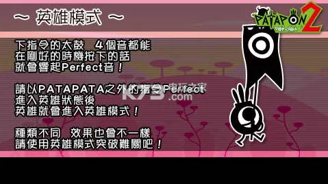 4. 英雄登场:游戏开始后不久,旗手和几个啪嗒砰战士会发现落难的英雄啪嗒砰并伸出援手,英雄为表达感激加入队伍。英雄天生神力,基本数值比一般战士高,兵种不固定可自由设定,还能使用必杀技,必杀技威力强劲,效果与兵种有关,其他附加能力与面具有关,面具是重要收集要素,通过巨蛋孵化获取。