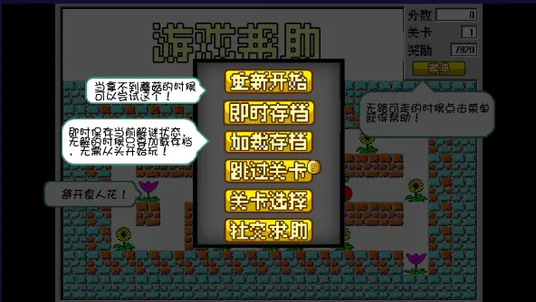 玩法上,点击地图控制小红人,要小心食人花,记得捡蘑菇。想拿高分就多收集宝藏和黄花。失败超5次可跳过关卡。