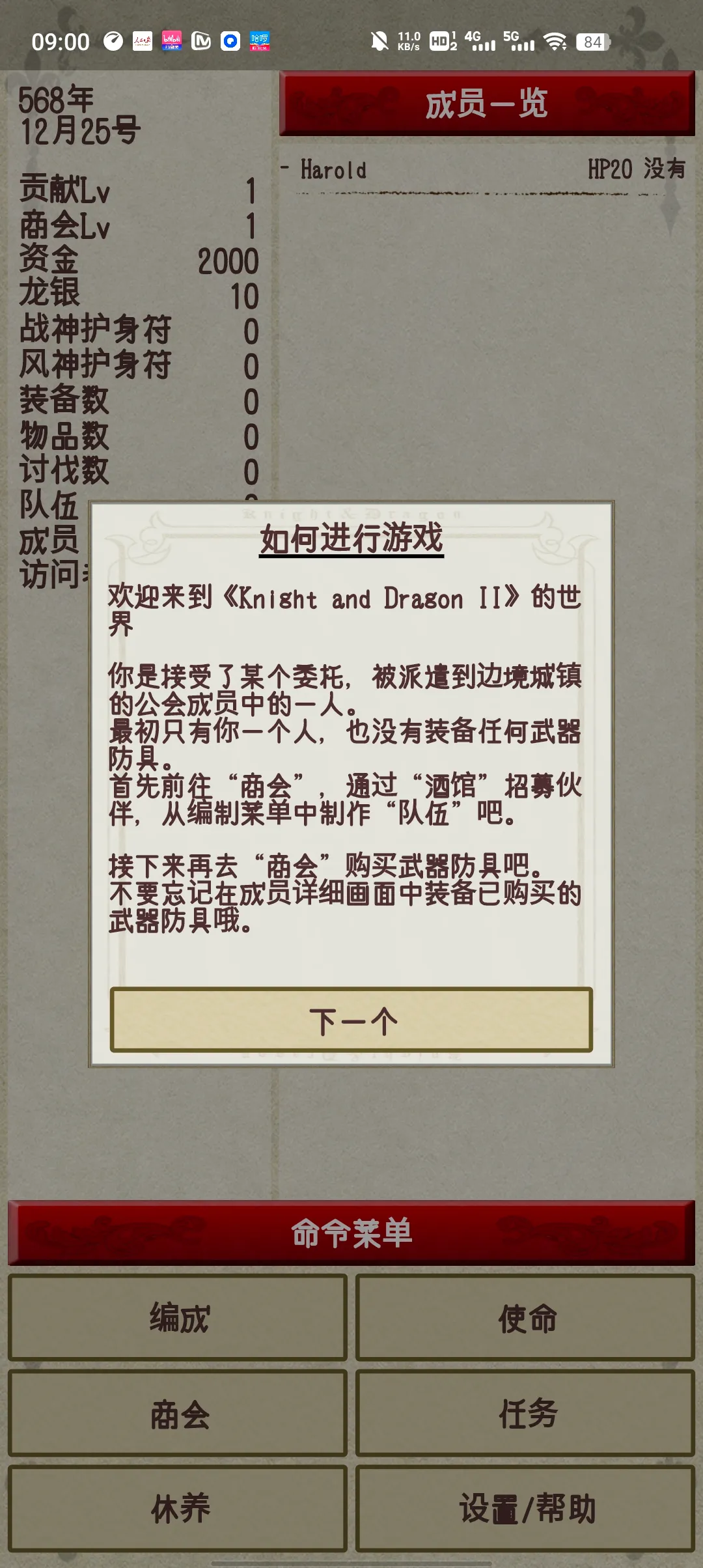 《骑士与龙2》是一款以中世纪为背景的文字剧情冒险游戏。玩家化身冒险家公会徽章,带领小队战斗,完成任务并升级装备武器。