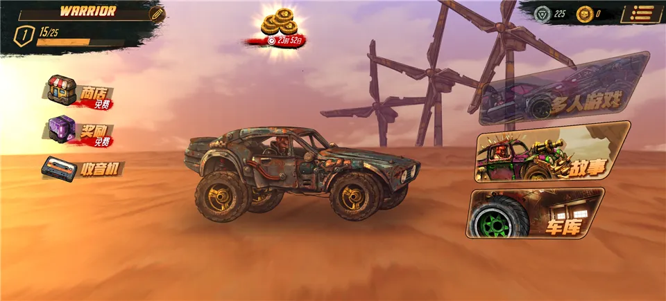 能解锁并收集一系列强大的末世涡轮赛车,每辆车都有独特武器、枪支及特殊能力。玩家可使用战斗物品和皮肤升级定制战车,通过战斗解锁新枪支和改装选项。