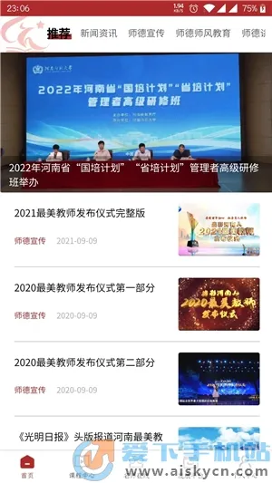 2、内容丰富:提供思想政治、师德修养、班级管理、学科教学、专业发展等多种课程培训学习,还有相关新闻资讯即时更新推送。