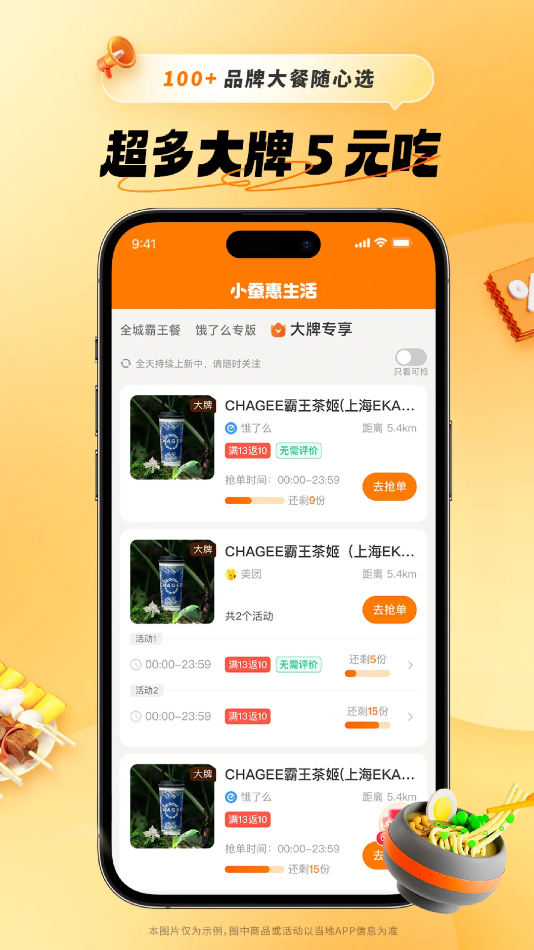 小蚕惠生活是杭州柏鹿信息技术有限公司开发的外卖返利app,支持多主流外卖平台,新用户有免单福利。用户参与活动可得返利红包、0元吃霸王餐,还有大量专属优惠券,操作便捷,助你轻松省外卖钱 。