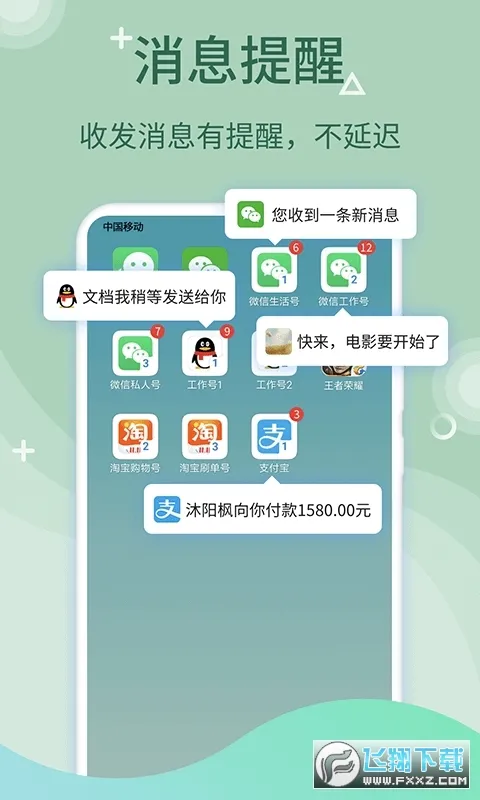 3 满足大多数用户应用多开需求,操作简单,还能修改多开应用名称,方便区分,告别来回切换账户的烦恼,工作娱乐两不误。