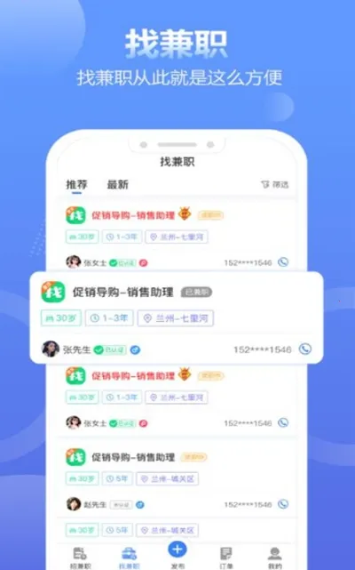 3、操作便捷,可一键发布招兼职找兼职,还能快速搜索喜欢的工作,精准推荐合适岗位,轻松找到心仪兼职。