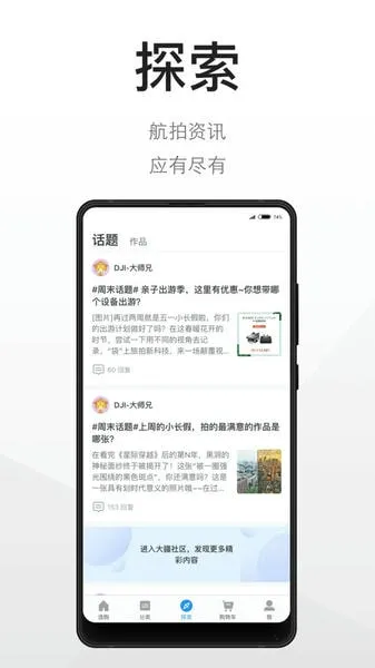 DJI大疆商城app是大疆自营在线商城,展示各类无人机等产品,有产品展示购买、新品首发预售、官方增值服务、社区互动学习、虚拟飞行体验等功能,提供正品保证、优惠活动等,助用户了解及购买大疆产品。