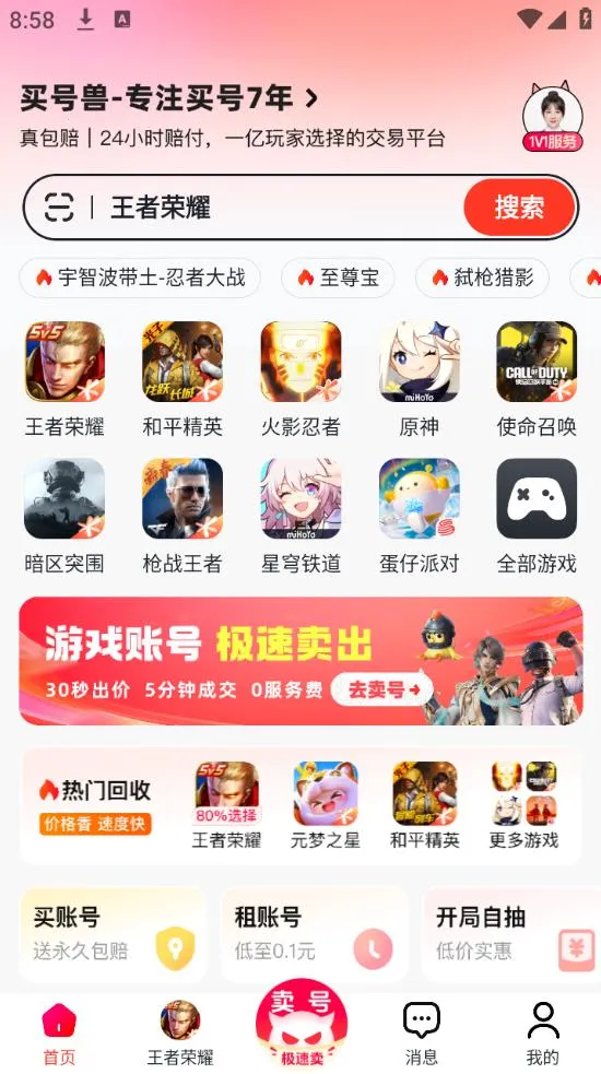 买号兽 2025 官方最新版本是专注游戏账号交易的专业平台,汇聚海量热门手游账号,有完善包赔保障。提供买号、卖号、回收等服务,账号信息严审,还有个性化推荐,交易方式多样,客户服务优质。