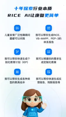 RICE安卓版手机版是一款特需儿童康复平台。它深度整合人工智能、大数据分析与专业知识,构建全流程闭环。
