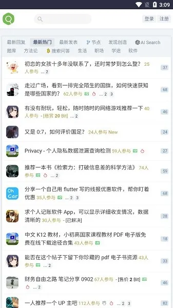 <3>社区活跃:设有社区板块,用户能在此分享搜索技巧、资源链接等,还能与志同道合的人自由互动交流。