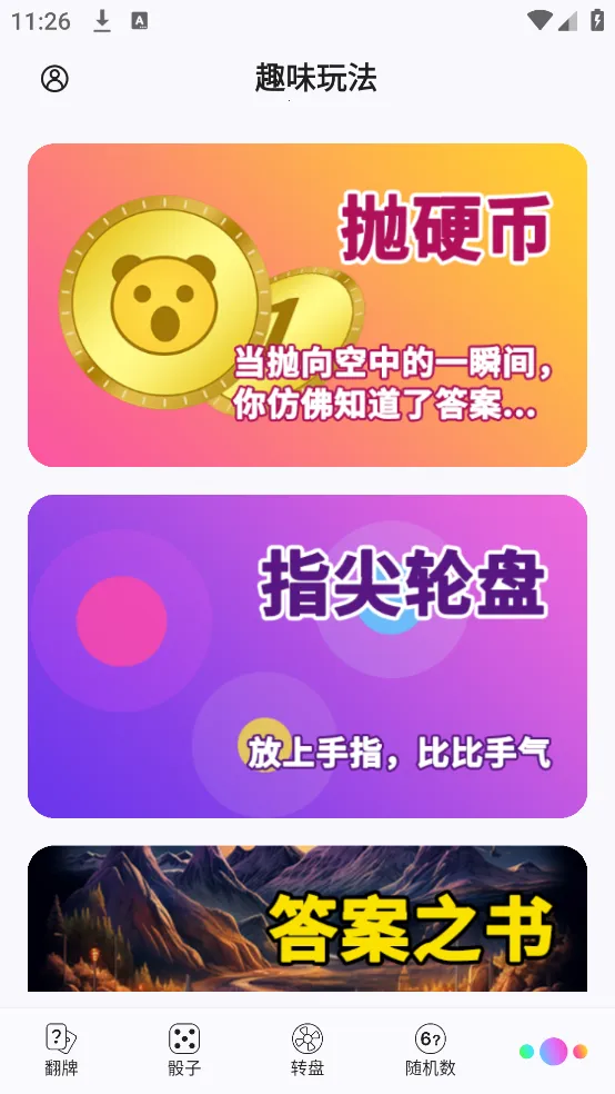 3. 玩法多样趣味足:有3D抛硬币、翻牌等花样玩法,3D骰子摇骰子对决超真实,趣味随机数范围极大,还能设置隐藏炸弹牌等,让选择变得有趣刺激。