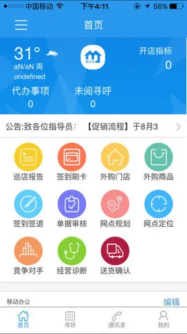 美宜佳办公是东莞市糖酒集团美宜佳便利店有限公司官方推出的移动办公助手。功能强大,涵盖业务工作、移动办公等,能进行网点规划、巡店等,支持考勤、审批等 OA 功能,还可添加企业人员,让沟通与管理更高效。