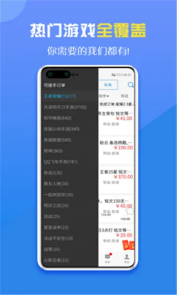 热门游戏全涵盖,覆盖超60款热门游戏,无论你玩什么游戏,在这里都能找到代练或发单需求,满足多样游戏需求。
