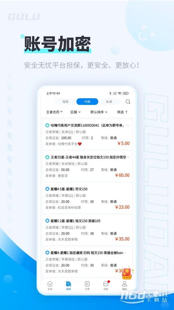 咕噜代练是一款专为游戏玩家打造的代练平台,能帮你解决游戏提升难题。它功能超强大,有一键发单功能,发布订单需求后,代练打手秒接单。订单大厅有大量肥单,完成验收秒通过。平台严选签约打手,实力服务,问题订单秒赔付。官方客服7×12小时在线,实时沟通秒回复。它涵盖王者荣耀、lol、魔兽世界、和平精英等超60款热门游戏的接单和发单需求。在这里,代练价格透明,支持自由交易。软件设置了专业安全措施,保护游戏交易安全。还能随时随地自动提取订单,让日程安排更合理。有问题能及时咨询专业人士解决。加入成为代练门槛低,人人可申请。总之,咕噜代练是寻找优质代练服务的不错选择,能让你轻松提升游戏实力,享受游戏乐趣。