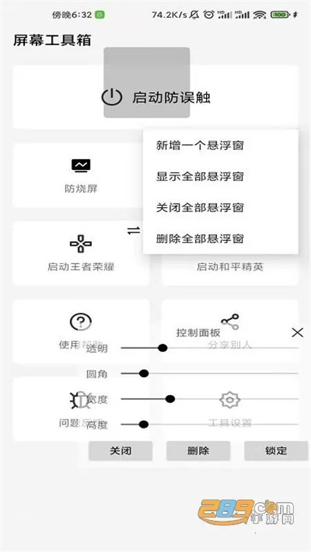 屏幕工具箱是一款基于悬浮窗原理的多功能手机屏幕管理软件。它集防误触、防烧屏、全局水印等功能于一身,支持自定义设置,操作简单,能提升手机使用体验,还可保护屏幕、防止误操作及进行版权保护。