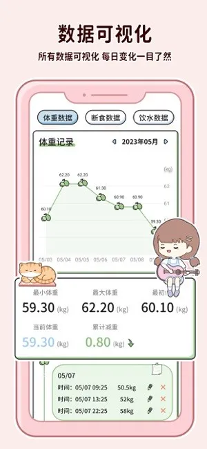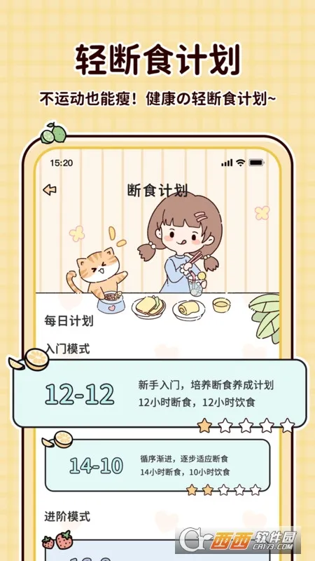 喵喵轻断食是一款健康减肥应用,提供多种轻断食计划,能根据用户录入信息推荐方案。支持记录饮食、运动及身体数据,具备智能提醒、数据可视化等功能,助用户科学实现减肥目标 。