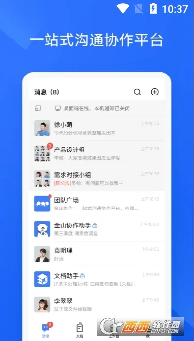 它的亮点也很多。多端同步,聊天记录云端存储,电脑、手机、平板多设备都能同步。企业通讯录可快速导入企业组织架构,成员随时查看。全局搜索能快速找回联系人群聊和聊天记录中的有效信息。总之,金山协作在各种办公场景下都是得力助手,能帮你轻松高效办公。