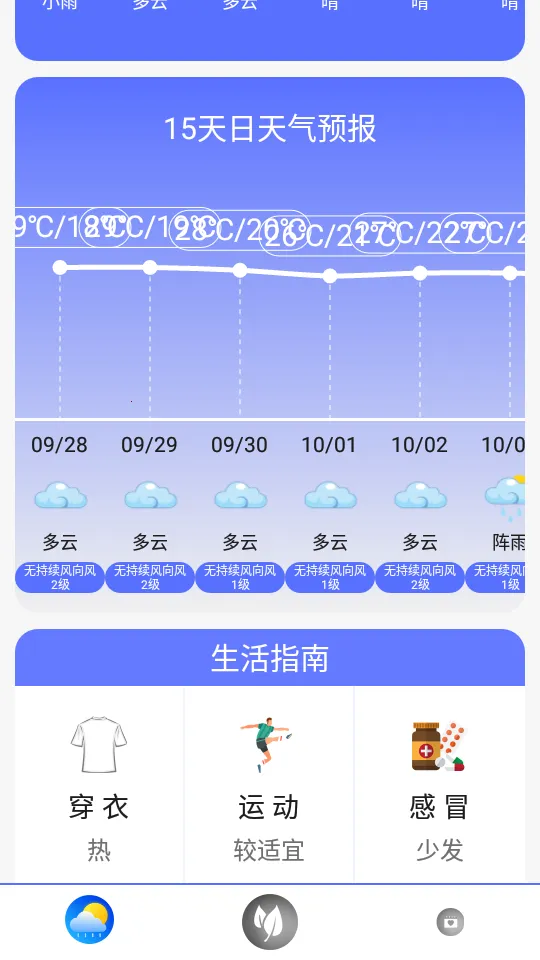 3、天气生活指数超贴心:晴天雨天各项指数综合呈现,根据天气轻松安排户内外活动,生活更便利。