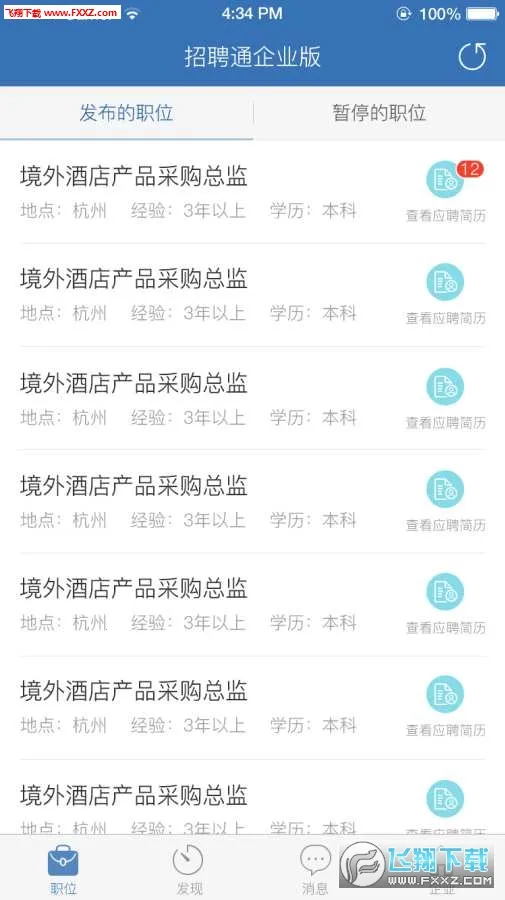 想及时获取招聘通知公告吗?那这款招聘通软件你可不能错过!它是专业的酒店餐饮旅游业招聘平台东方网升为企业老板人事打造的高效手机招聘工具。在这里,能查看新投递简历并邀约面试,还能主动与求职者即时沟通,快速找到合适人才。它功能超强大,多端同步效率高,电脑手机都能操作。职位分享渠道多样,微信海报扫码就能投递。优质简历一键分享,用人部门视频语音随时面试,实时沟通安全高效。海量人才精准匹配,大数据推荐。能方便管理应聘简历,进行邀请面试等操作;轻松管理职位,预览、刷新、暂停、激活职位。还有海量简历库,便捷查找人才。随时随地与求职者交流,让面试更有效率,账号管理也安全有保障。有了它,招聘超便捷,能轻松解决招聘难题,赶快下载体验吧!