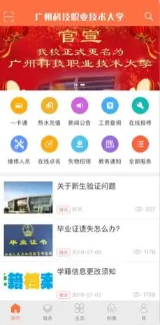 可提供一站式服务,像新闻公告、一卡通、电费充值、热水充值、在线点名等功能服务一应俱全。