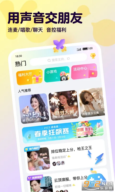 Yo语音2025官方最新版本是广州津虹网络传媒有限公司打造的语音社交软件。有多人派对、相亲速配等玩法,提供优质直播内容。功能多多,能签到领福利,还有全新开黑房等升级,让交友互动更精彩。