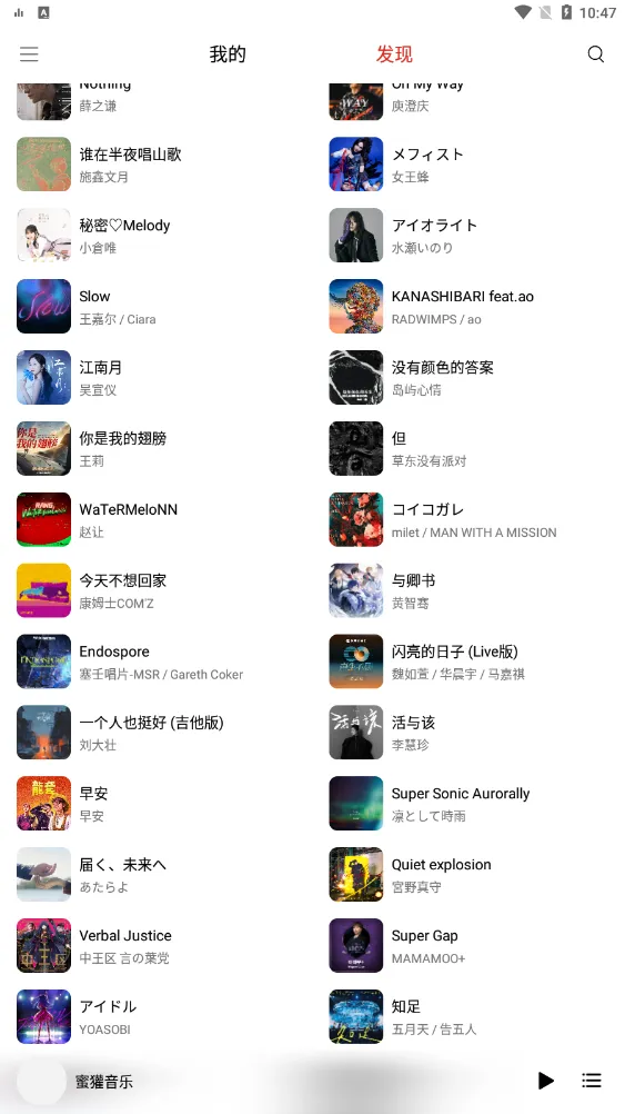 蜜獾音乐是一款出色的音乐软件。它支持五大平台搜索,能自动换源,免费无广告,还可登录同步网易云歌单。这里有海量曲库,千万音乐随心听,无论在线还是离线都能畅听。有精细化歌曲分类,能快速找到想听的歌,也有个性推荐,助你发现小众好歌。新歌推荐及时,让你紧跟潮流。不仅如此,它还支持抖音音乐收藏同步。界面简洁,细节出色,状态栏原生设计,可拖拽进度条。总之,能给用户带来纯粹且优质的音乐体验 。