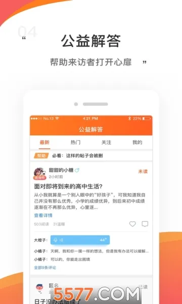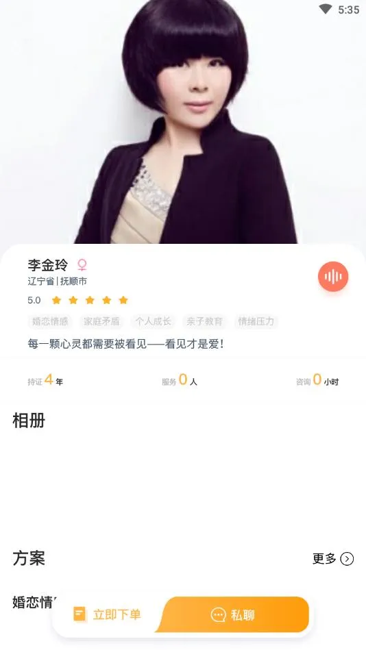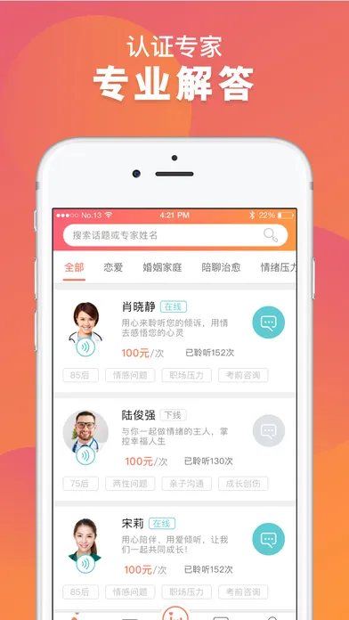 1 专业靠谱:行业专家入驻,均获国家认证职业资质且有多年从业经验,能从专业角度解答心灵困惑。