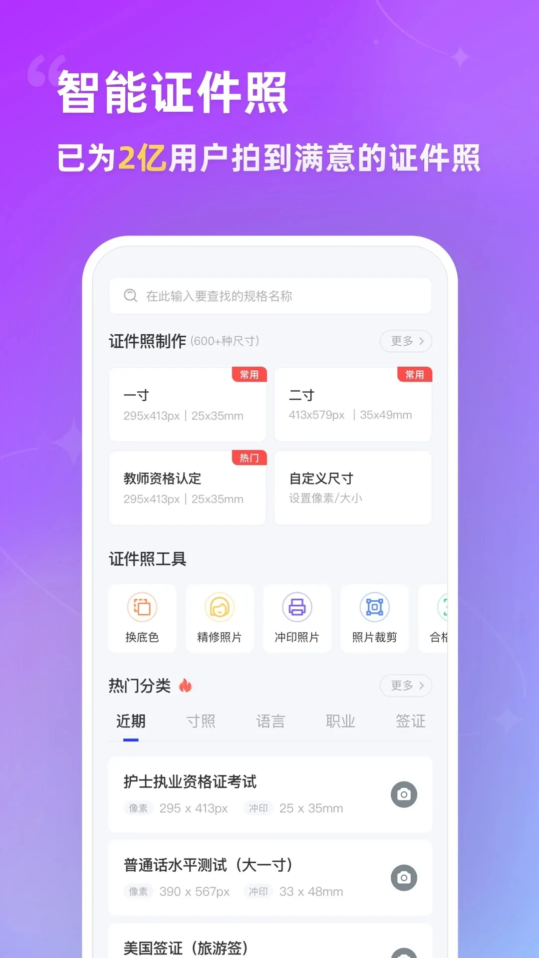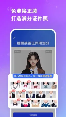 其功能特点丰富,多尺寸适配,涵盖常用寸照、护照、考试报名等规格,还可自定义尺寸;精准抠图换底,能处理眼镜反光问题,提供多种底色选择并可自定义调色;灵活换装美颜,有男女正装、童装等服装模板,美颜效果自然;提供冲印售后保障,电子照可保存或发送,全国包邮冲印,多数城市送达快,有问题可免费调整;专项场景优化,针对特定学习阶段报名场景对模板进行优化。