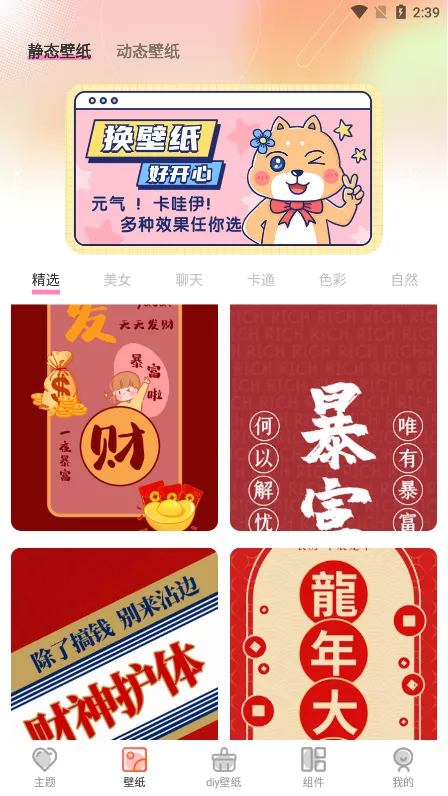 3. 精美主题套装,提供精心设计的主题套装,包括壁纸、图标等全方位元素,一键应用即可瞬间转换手机风格,享受整体的视觉盛宴。主题类型丰富多样,涵盖简约、可爱、动漫二次元等多种风格,满足不同用户的审美需求。