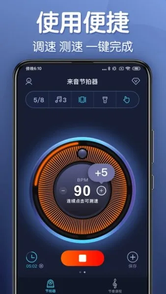 1、节奏精准:由专业乐师精确设计,节拍准确稳定,比物理节拍器更好用,能帮助用户精准掌握节奏。