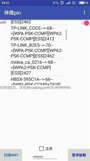 神鹰pin2025是一款WiFi密码破解工具,免root权限,界面简洁无广告。能快速扫描附近WiFi,通过WPS协议破解密码,支持批量处理,还可查看管理密码,自动计算腾达路由器pin码,方便外出连接网络。