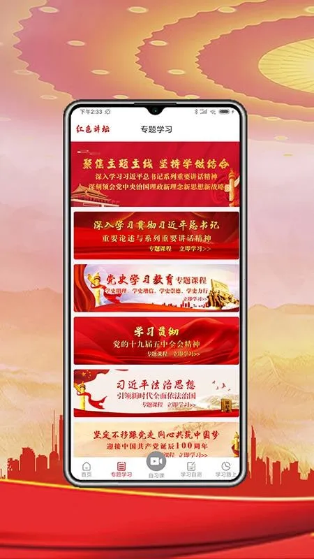 红色讲坛2025官方正版是一款专为公共服务单位人员打造的思政学习软件。它弘扬习近平新时代中国特色社会主义思想,汇集优质课程,有多样学习资源与自测题,还有名师指导、详细学习计划,助用户提升政治知识与觉悟。
