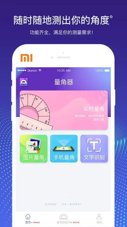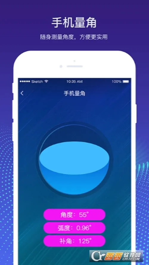 量角器测量仪是多功能测量软件,集实时量角、图片量角、坡度测量等功能于一体,支持智能识别、单位转换,界面简洁精准。还能换肤,操作简单,随时随地满足多种测量需求 。