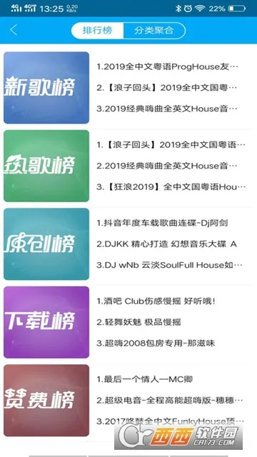 1、音乐资源海量:拥有丰富的DJ舞曲音乐库,数量多且种类全,涵盖中文、英文、日韩等多种语言的DJ舞曲,还有车载电音、网红喊麦、高品质广场舞歌曲等应有尽有。