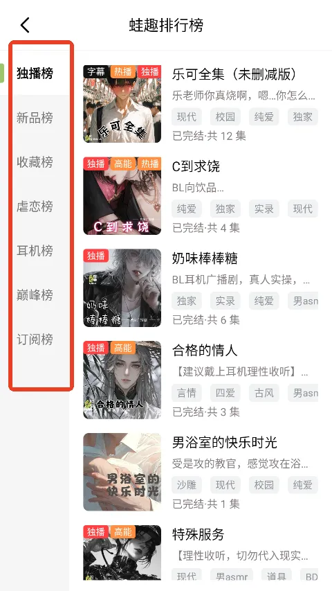 2、分类精准:广播剧和其他节目按题材、类型、年代、人气等维度细致分类,方便用户精准定位心仪节目。