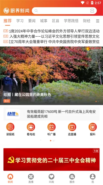 眼界新闻客户端是乌鲁木齐市倾力打造的权威新媒体平台,功能超强大。它能让你收获全面新闻资讯,通过搜索工具一次找到全部新闻资讯及视频等资源。在这里可体验网上政务大厅,为个人及法人提供办事便利。阅读新闻后能自由评论,抒发自己的看法。还能满足个性阅读偏好,自选感兴趣的新闻版块。它能解决你获取新闻不全面、政务办事繁琐等问题。24小时不间断更新新闻报道,重大突发新闻30秒推送至你手中。精心挑选近千家优质微信媒体供订阅。个性化推荐超贴心,用得越多推荐越准。不管是想了解各类新闻,还是办理政务,又或是享受便捷生活服务,眼界新闻客户端都能满足你,给你的生活带来极大便利。