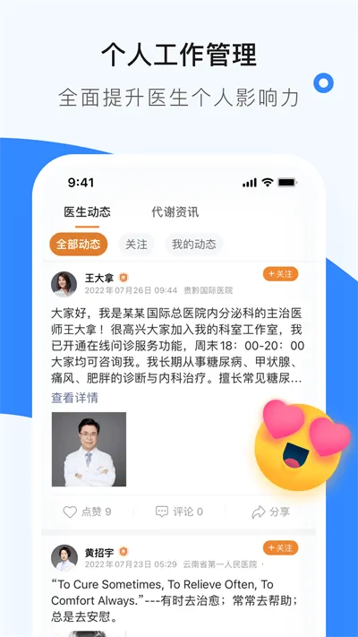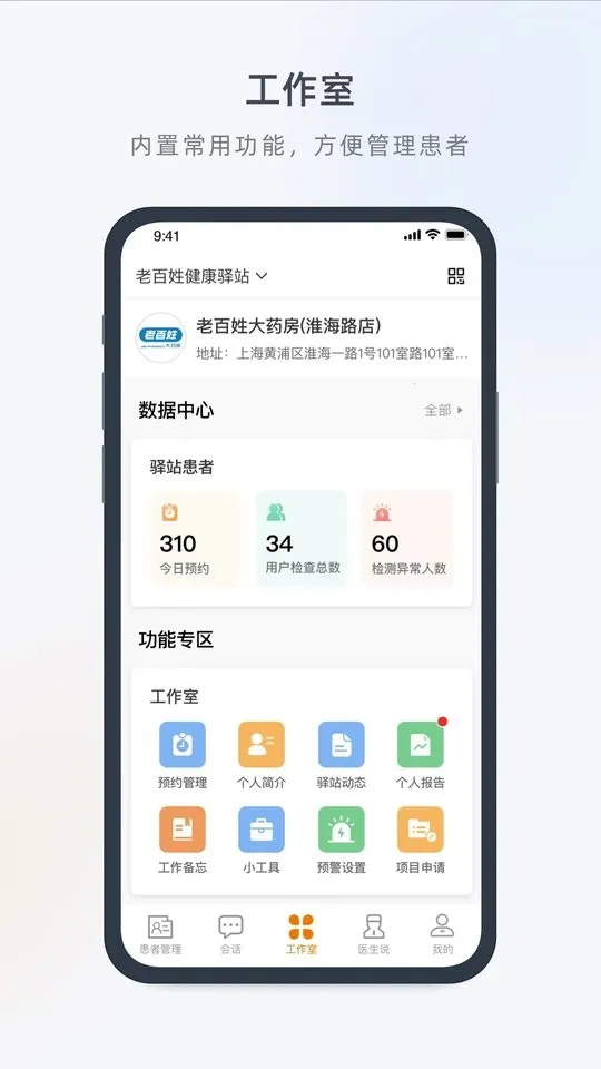 “医生工作室2026下载安装”怎么样?它是一款专为医生打造的管理软件。下载安装后,使用手机号注册登录即可开启便捷工作模式。其功能贴合医生需求,能在线管理患者信息,自动标记异常,还可查看健康档案、家庭数据等。支持私聊患者,发布健康知识,查看患者提问并回复,还有医学计算器等实用小工具。软件应用内存小,官方出品使用流畅。能助力医生提升诊疗效率,实现阳光收入,快速触达更多患者。无论是患者管理、科室管理还是个人工作管理,都能提供有效帮助,是医生办公的得力助手。
