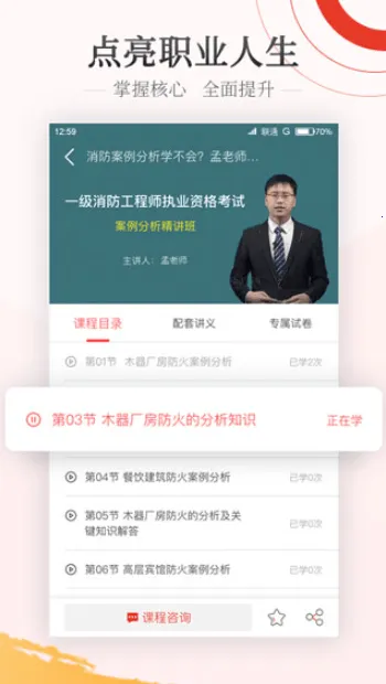 优路教育是专业的职业技能提升平台,如果你想找正规培训机构联系方式,它能满足你的需求。这里涵盖海量精品职业课程,无论你是学生党还是职场人士,都能找到适合自己的课程。其功能超强大,有海量题库,边学边练,分类刷题针对性强;提供答疑服务,老师解答疑点难点助提升;在线直播,强师带学,实时互动氛围好;及时推送考试资讯,让你巧掌握备考信息;干货资料定期更新,便于归纳总结记忆。软件亮点众多,像实景课堂有实物展示和真人操作演练讲解,教学体系轻松化,3D模拟仿真教学有趣,还有移动课堂APP,免费直播课和精品课播放,采用直播回放双重模式,让你在线和离线都能学习。有了优路教育,轻松解决职业技能提升难题,学习超便利!