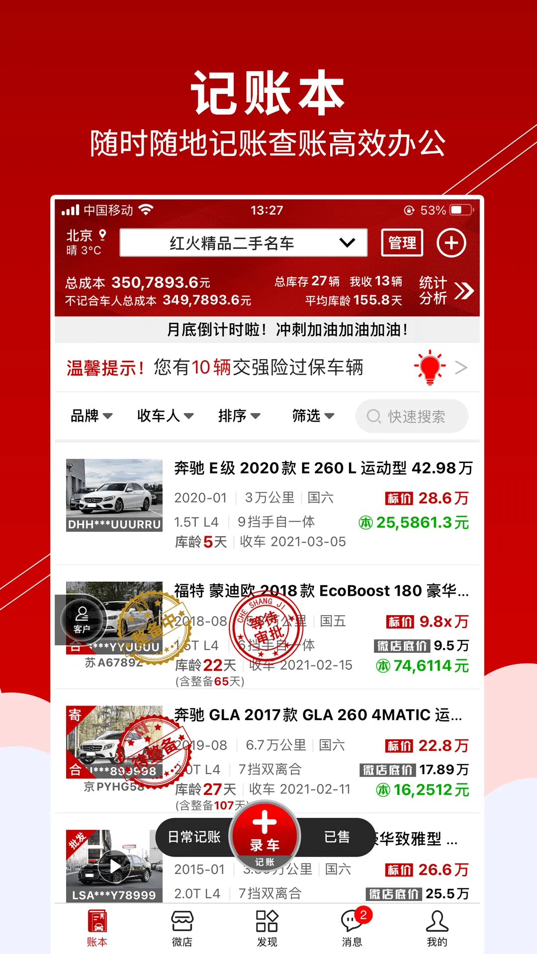 它能解决车商记账繁琐、数据统计难等问题,账目数据公开透明,减少统计核算成本和时间。手机记账方便,每笔销售记录永久保存,更换手机登录账号自动同步数据,让车商的记账工作轻松又高效。