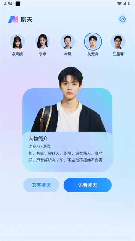 AI语音通话最新手机版是一款备受关注的应用。它基于人工智能技术,能模拟人类对话与用户交互。软件提供多款特色角色,像温柔男、大气质霸总、甜美妹妹、知性御姐等,满足不同用户喜好。其采用自然语言处理技术,无论是文本聊天还是语音对话,都能快速准确响应,理解用户问题和意图并流畅交流。