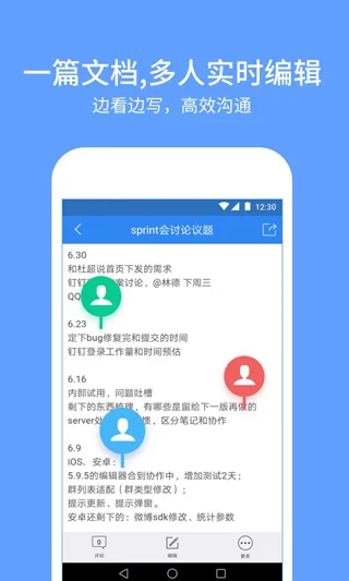 操作便捷,左侧栏是工作群列表,中间栏是文档目录及编辑器,右侧栏是讨论区。还支持所有平台的文件编辑与浏览,支持多种主流文件格式且多人可同步编辑。总之,有道云协作能切实解决团队办公中的诸多问题,是一款出色的移动办公软件。