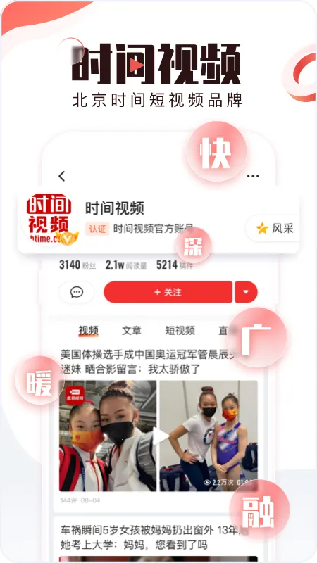 北京时间取自北京这座城市。北京时间app可是个很不错的综合新闻和生活服务应用呢!它能解决咱好多需求。新闻板块有超有温度的新闻,让咱了解天下大事。直播板块是超棒的新闻直播平台,能随时看实时新闻直播,感受现场氛围。还有自频道板块,能订阅直播号发现新故事。调查板块反映民声。它还内置生活服务功能,像在线购物、天气查询、缴纳水电费等都能轻松搞定。不管是想了解即时新闻,还是处理生活琐事,它都能贴心服务。有了它,咱不用到处找信息,打开就能看到丰富资讯,轻松知晓北京大小事,还能享受各种便捷生活服务,真的超方便,强烈推荐大家试试!