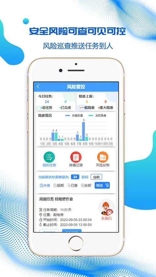 丰富功能助力企业管理:涵盖隐患治理、安全绩效、教育培训、应急管理、风险管控等丰富功能,为企业提供全面的安全管理支持。