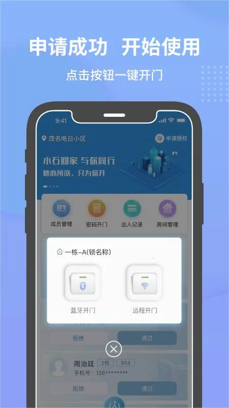 在管理方面,能定制授权规则,针对不同用户轻松一键授权,还可进行成员管理、权限分享。同时会自动保存出入记录,方便用户查看。系统采用银行级加密,保障安全。无论是日常小区通行,还是亲友来访,小石开门都能很好地满足需求,为用户提供安全便捷的社区生活体验。