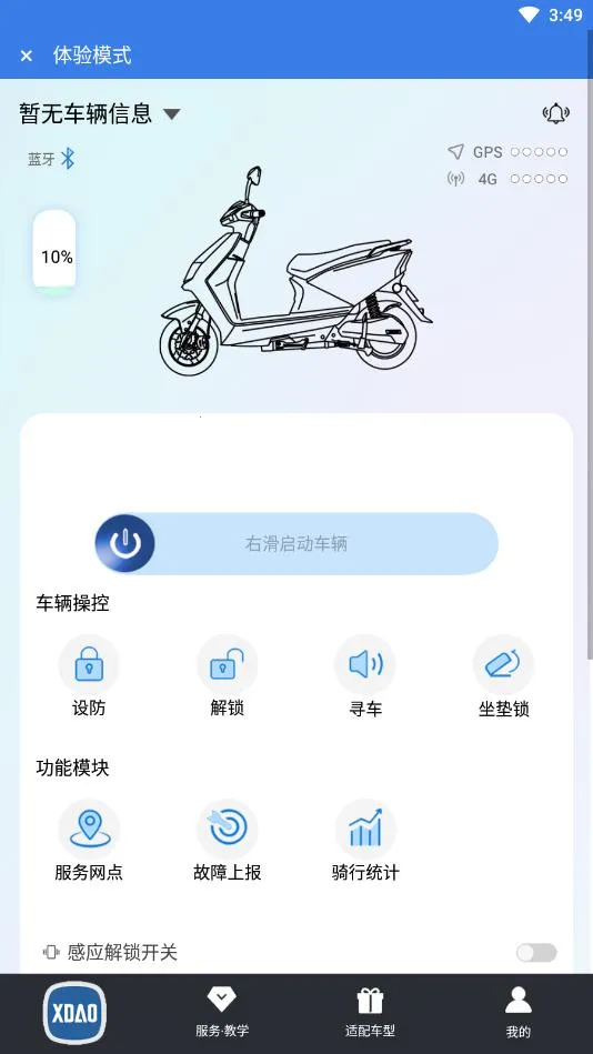小刀智能出行2026官方正版是一款专注于智能出行的应用。它能让用户轻松连接车主设备,实现便捷出行管理。其特色在于,在故障提示模块可了解历史故障信息,后台模块故障信息会自动上传,关于我们模块能阅读使用说明,首页模块能知晓电动车里程电量等信息并控制报警。软件功能丰富,如手机遥控,在蓝牙连接范围内可遥控车辆设防、解锁、启动、寻车、静音设防、开座垫锁等;有感应功能,车辆与手机蓝牙相连,手机靠近自动解锁,超出距离自动锁车;还有数据统计功能,可回看骑行轨迹等数据。商城方便购车,能查看服务网点,支持导航和拨打电话,还可反馈问题以及接收活动信息推送等。用户管理功能可对个人账号车辆进行管理设置,实现车主分享车辆等功能。