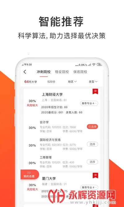 2、专为高考考生打造,提供海量服务和范围,支撑查询院校专业就业和高考资讯,根据考生成绩自动提供适合和保底的学校,把握院校的录取百分比。