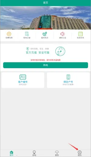 2、在主页面选择"我的"功能入口,进入个人管理与服务界面。
