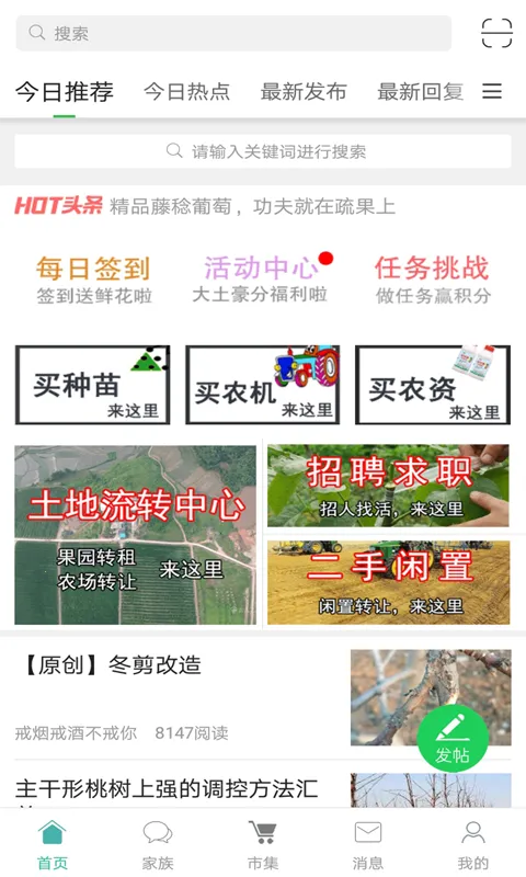 农人之家是一款专为农民打造的交流平台。在这里,大家能分享种植经验,互相学习借鉴,共同提高农作物种植技能,比如交流如何防治病虫害、怎样合理施肥等。它还提供水果行业最新资讯,涵盖市场分析、行情预测等,助力农民做出明智决策。其拥有千万级问答库,几乎任何农业相关疑问都能找到答案,快速提问功能让用户能在十分钟内得到专业回答,解决生产中的困扰。此外,能查看周边用户和帖子,方便交流互动,图片、语音上传等功能也使交流更加便捷。总的来说,是农民交流学习、获取信息的得力帮手。