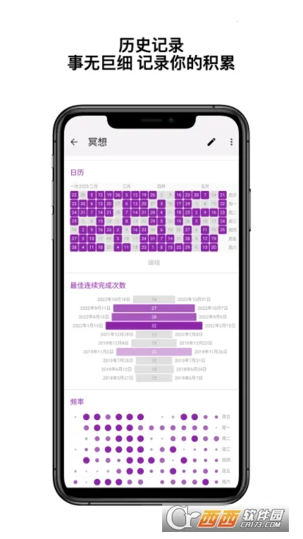 提供详细的图表和统计数据,能清楚展现习惯随时间的改善情况,向后滚动可查看完整历史记录,方便用户深入了解习惯养成全过程。