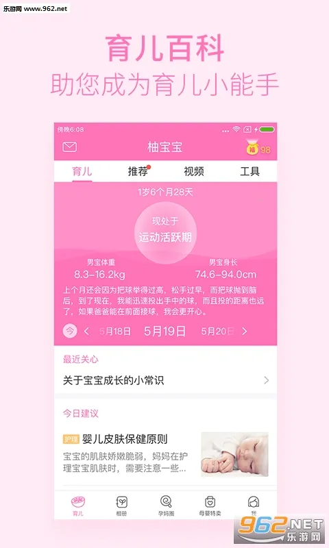 知识丰富助育儿:从备孕知识到营养辅食,有齐全的孕育小工具,还有医生专业背书的权威科普趣味小视频,解决宝宝成长中的小烦恼。