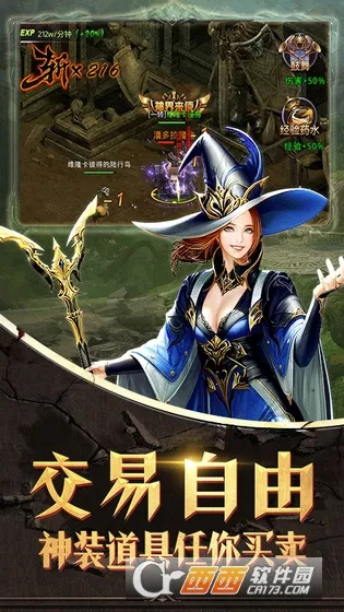 4、**刺激战斗体验**:支持百人同屏激战,组队讨伐神魔BOSS,全屏炫酷技能特效,珍稀装备高爆率掉落,自由交易可体验暴富爽感。